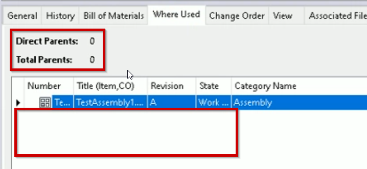 *Where Used tab in Vault Items does not show relation with Item for *